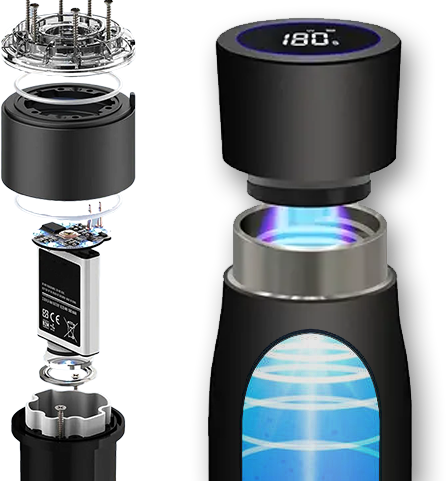 Ultra powerful 99.99% effective UV-C LED light packed into a portable, versatile bottle cap to eliminate germs, pathogens, microbes & odor.